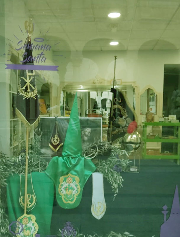 | La semana Santa oriolana tiene una gran relevancia en nuestra ciudad Por la secular tradicion religiosa de nuestro pueblo y por la gran participacion ciudadana en sus famosos desfiles procesionales. Todos los años hay una gran interacción, entre el Comercio Justo y las Hermandades, Cofradías, Mayordomías de nuestra ciudad, tanto por el gran número de cofrades que son voluntarios del Comercio Justo, como en relación con las compras numerosas que todos los años realizan las Cofradias y Hermandades, de productos de Comercio Justo Por ello, este año que sufrimos tantas restricciones con motivo del COVID, nuestra tienda ha estado presente en las páginas digitales de todas las Cofradias, y nosotros a nuestra vez, hemos querido cederles en estas semanas en torno a la Semana Santa, un escaparate, con los simbolos, bandera y estandarte de una de ellas. En nuestro caso de la Hermandad del Prendimiento . |