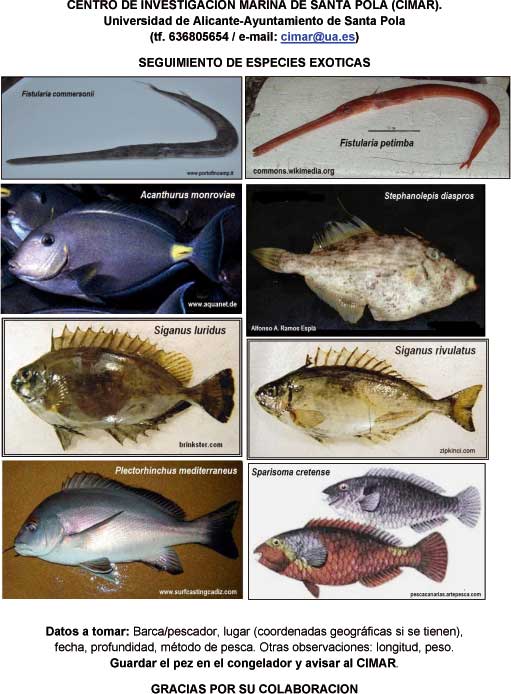 | Hace unas semanas, por medio del biólogo Santiago García Rivera, que actualmente está realizando unos trabajos de investigación, para favorecer la reproducción de la sepia en aguas torrevejenses, tuve el placer de conocer al profesor de la Universidad de Alicante y Director del Centro de Investigaciones Marinas(CIMAR) de Santa Pola, Alfonso Ramos Dicho profesor, conocido mundialmente por sus muchos trabajos científicos, entre otros, por el descubrimiento de 4 especies marinas de la familia de las Ascidias. Una de estas especies fue descubierta en aguas de Santa Pola y otras 3 en aguas antárticas. Es además, el fundador de este importante Centro (el CIMAR) poco conocido entre los pescadores recreativos, pese a su importancia con relacion a la fauna marina. Es también el creador de la Reserva Marina de Tabarca, cuyos frutos conocen ya los pescadores locales El traerlo a estas páginas es porque solicita la colaboracion del pescador recreativo, para la investigacion de peces y animales marinos exóticos, que a través del canal de Suez, del estrecho de Gibraltar, adheridos a los cascos de de embarcaciones o importados y luego arrojados vivos en nuestras aguas, (caso del cangrejo azul), estan invadiendo las aguas mediterraneas, a veces con perjuicio de la fauna local o provocando un riesgo por su potencial peligrosidad y desconocimiento del pescador recreativo. Somos muchos los pescadores deportivos que amamos la naturaleza, el mar y sus criaturas, pese a nuestra aficion a pescar. Por ello creo muy interesante colaborar con estas iniciativas que buscan sobre todo proteger el medio marino e impulsan su mejor conocimiento. Bajo, unas fotos para el recuerdo de la interesante visita que realizamos al CIMAR . El profesor Ramos nos colmó de atenciones y nos explicó detalladamente la labor investigadora y de docencia que realizan en el Centro y que podrá comprobar pulsando el enlace al final de esta nota informativa Bajo, documentos del profesor Ramos, solicitando nuestra colaboración, y unos enlaces interesantes con relacion al CIMAR y las investigaciones y trabajos que allí se realizan |