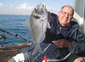 20 de diciembre. Enrique pescando a bordo de MIS NENAS con un gallo y dos pagelones, uno de los cuales según la informacion remitida, pesó 2,400 |