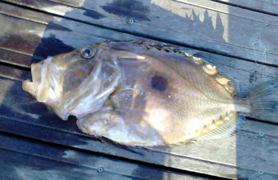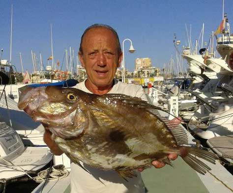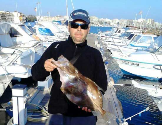 | Pez de S.Pedro o gallo pedro de mas del kilo capturado por Javier Lopez en 54 m de sonda,untilizando de cebo langostino congelado |