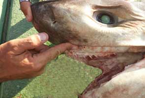 Cañabota pescada a bordo de la embarcación LUNA GADEL II,. junto con un buen puñado de besugos y jureles negros, pescando en el Seco de Cabo de Palos.El remitente me hizo la salvedad de que las capturas fueron hechas sin usar carretes electricos.Vea las caracteristicas diferenciales de la cañabota, pulsando aquí |