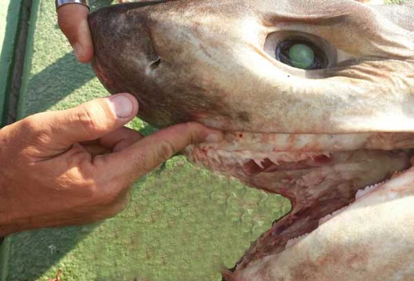 Llama la atención, aparte del tamaño de sus dentones, por la pesca de una tintorera, rara, pero presente en nuestras aguas . Como saben, en estos días, se han cerrado algunas playas de Cataluña por la presencia en las mismas de esta clase de tiburon azul. Pulse aquí. En Torrevieja que yo recuerde, nunca se ha detectado su presencia en ninguna playa ni ha causado nunca ningun accidente