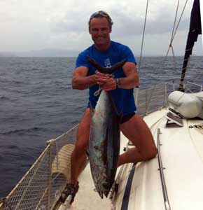 | Albacoras pescadas, recientemente al curicán a vela , a bordo del Kapi. La mayor tenía cerca 24 kilos . La otra de 7 a 8. Foto remitida por Jaime Javaloy .Para mas imformación sobre "curri a vela" pulse aquí |