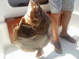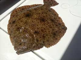 Rodaballo ( Psetta máxima ), de 4,950 kg capturado por Charli en 100 metros de sonda a bordo de la embarcación NOELIA patroneada por Pablo Espinosa ( foto remitida por Joaquín Blanco). Pulse imágenes para ampliar.