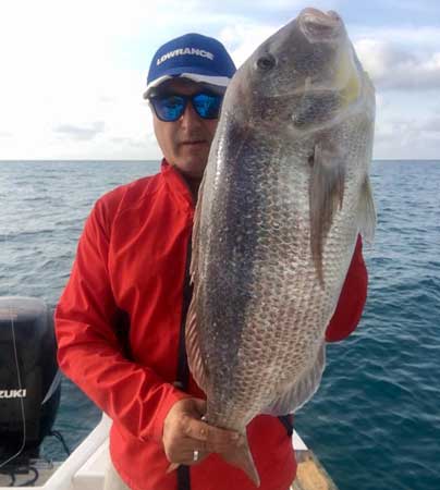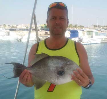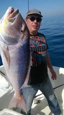 | Ese día tuvo, pescando al curri con con cebo vivo , dos picadas, logrando este palometón , esta vez de 9 kilos , pescando con su padre Antonio ENHORABUENA DE NUEVO |