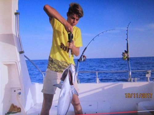 del Kulila. Su hijo a bordo de la semirigida, JOAQUIN ONE, el día 1 de Enero, logró este bonito ejemplar. Enhorabuena y bienvenido a esta web |