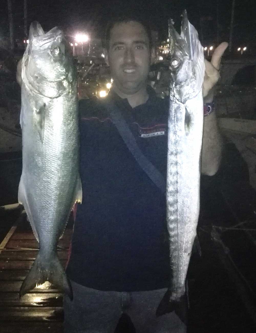 | Bajo, otra preciosa y reciente captura de Mario Quinto, pescando al jigging, acompañado en esta ocasión de su amigo Jose Valenzuela (Pulse imagenes para ampliar) |