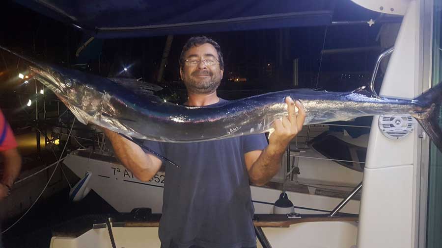 | Utiliza rapalas de distintos modelos y pesca en fondos de 50 a 70 metros de sonda |
