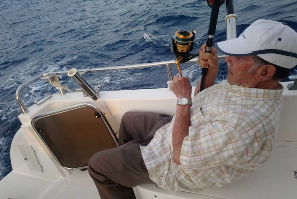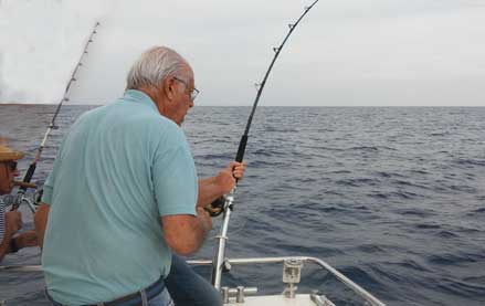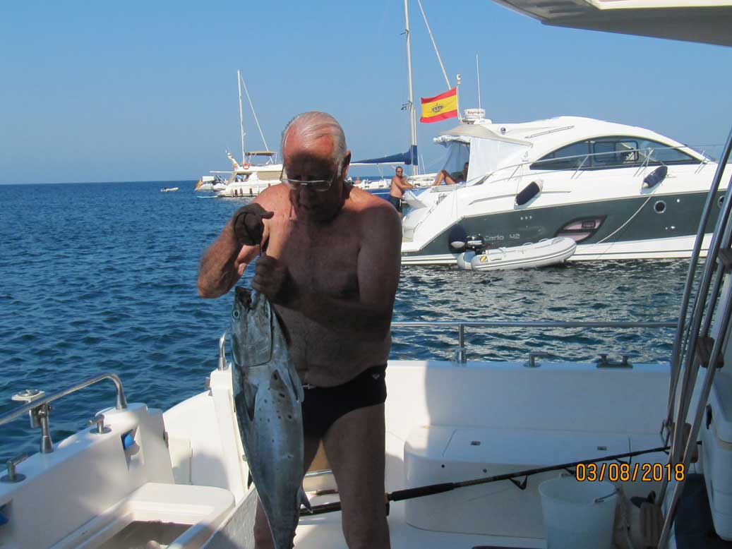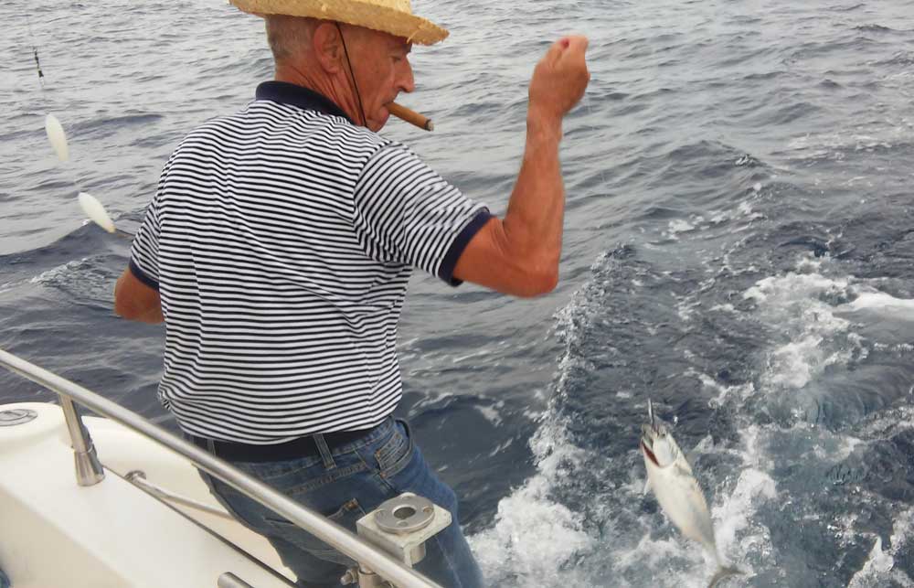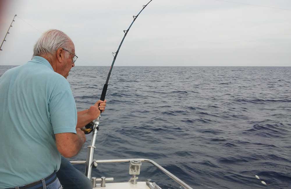 Ese día pescaba al curricán en solitario. Ya de vuelta, puso rumbo a Tabarca. En ese momento recibió una fuerte picada en la caña de estribor en el momento de estar girando el barco. Siguió girando despacio, de 20 en 20 grados con el piloto automático, hasta que por la proa tuvo la isla.