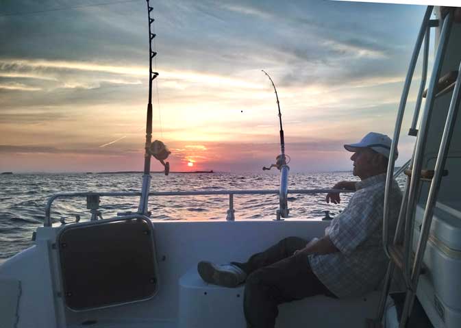 Un precioso atardecer rumbo al puerto. Mi agradecimiento a Miguel y a Vicente por sus atenciones . Siempre se aprende algo con este par de maestros del curricán |