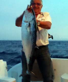 El día 24, unos días despues de la pesquera que va a continuación, volvieron al mismo caladero Esta vez el protagonista fué un nieto de Miguel Cuervo (Pinche imagen para ampliar) logrando unas pocas bacoretas de kilo y esta de 5 kilos VEA VIDEO DE SU CAPTURA |