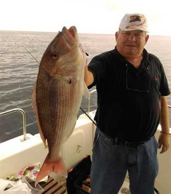 El patrón con dos buenos pargos, pescados en 98 m de sonda