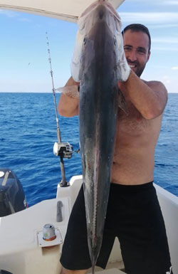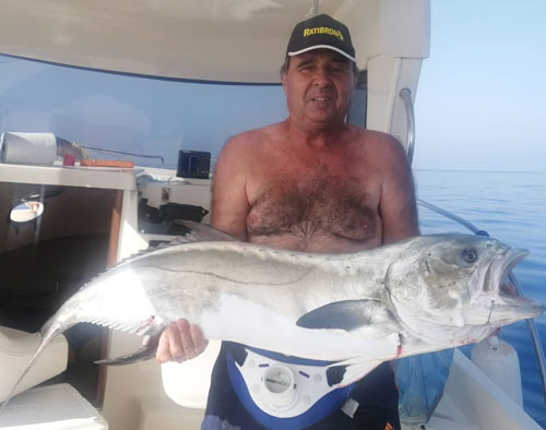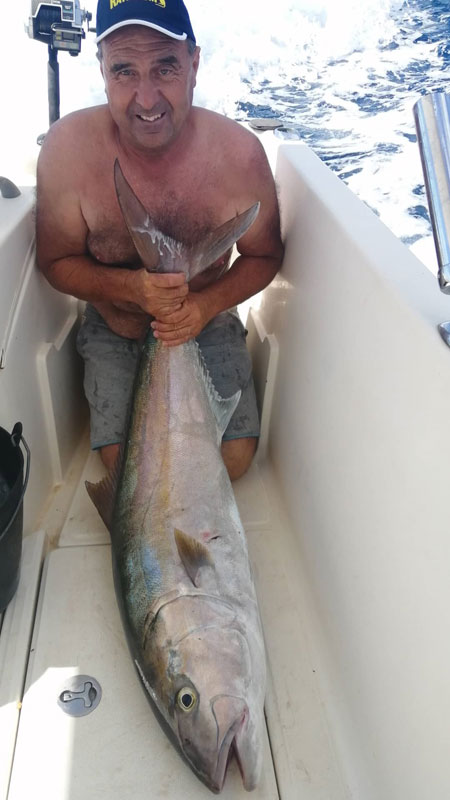 | Lecha pez limón o Seriola Dumerilii pescada el domingo dia 27 de junio pasado a bordo de la embarcación SERGIO Y MARCO, patroneada por Marco, acompañado de su padre Antonio. Dió un peso de de 19,500 kg y fue pescada a currican de fondo. Nuestra enhorabuena amigo, y gracias por el envío de las fotos. Un saludo VER DIFERENCIAS ENTRE LECHA O PEZ LIMÓN Y PALOMETON |
