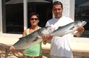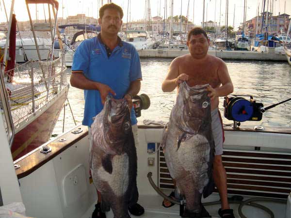 ![]() Dos palometones ( Seriola dumerilii) capturadas por Mario en aguas de C.Roig utilizando jureles vivos al curri de fondo