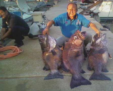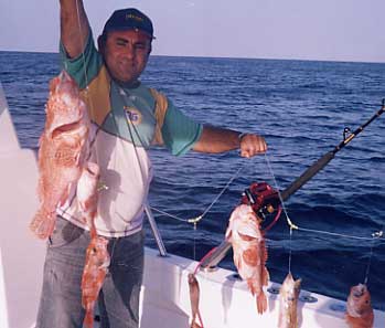 ![]() Arriba otra buena pesquera , esta vez de chernas a bordo de "El Señorito" |