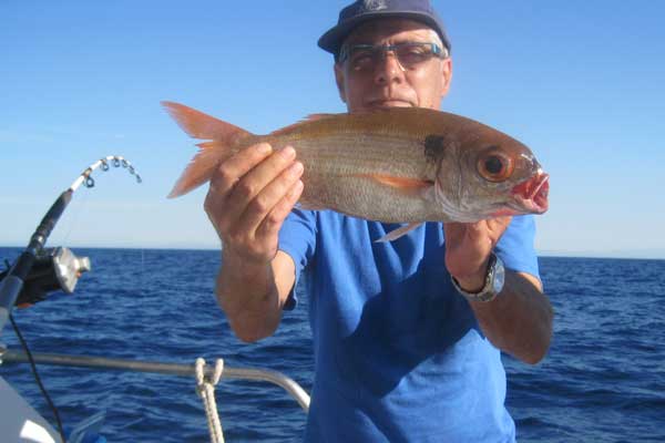 En el pesquero que visitamos, los besugos de ordinario no pasan de 300 a 400 gr. Éste que muestra Martín, era de unos 800 gr . Pulse imagen para ver otra imagen