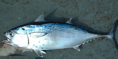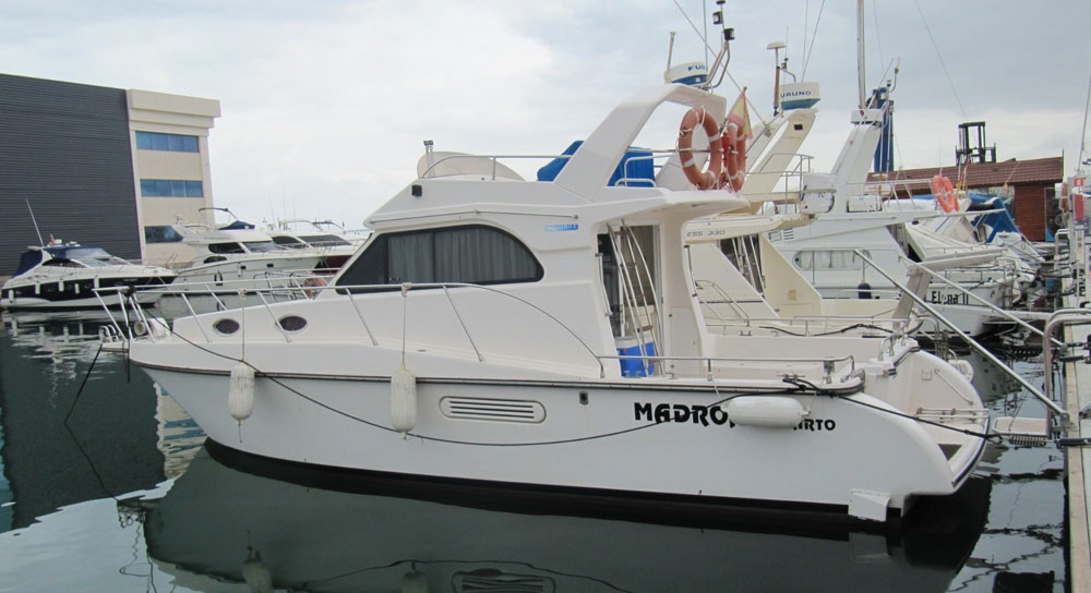 | Seguidamente puse en marcha el radar, la sonda y el GPS, metí defensas a bordo, solté cabos, y di avante. ¡ Como pasa el tiempo..! ,y ¡cuántos pequeños detalles a revisar y poner a punto! En ese momento casi amanecía . Salí despacio del puerto. El viento soplaba del W, navegué rumbo al E, una vez sobrepasado el Cabo de Santa Pola. Navegué cómodamente, con el viento en popa. Me dirigí a unas “señas” determinadas, con fondo rocoso, donde a menudo he encontrado, en esta época, bacoretas de buen tamaño y que tenía previamente marcadas en mi GPS. Al sobrepasar apenas el punto marcado en el mapa, la caña de babor se dobló violentamente. Acudí a ella, dejando funcionando el piloto automático. El arnés que llevo colocado, con el cabo de seguridad, hecho firme en el borde inferior del techo de la cabina, no me resta movilidad y puedo trabajar el pescado con tranquilidad. Era una bacoreta de unos 750 gramos, que pasé directamente a la nevera de popa, una vez desanzuelada |