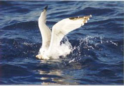 La presencia de melvas o atunes en la zona nos la señalan los charranes, pardelas, alcatraces o gaviotas, quebrando su vuelo o picando hacia el mar. A veces se ven huir, despavoridas, las sardinas o boquerones, o vemos saltar las melvas o atunes en superficie. Actualmente se pueden localizar los atunes, con las sondas modernas, de ordinario a una profundidad de 10 a 20 metros, tanto los jóvenes como los adultos, por su tendencia a seguir las embarcaciones. . Una vez localizados, les dábamos pasadas al curri lento procurando no hacerlo por encima de la zona donde se estaba cebando, sino por los alrededores de la misma. A veces, al pasar cerca veíamos que las sardinitas o boquerones se habían concentrado formando una bola apretada de color verdoso, sobre la que se lanzaba el averío. Era lo que llamábamos el "garbillo" Gaviotas, charranes, y alcatraces picaban una y otra vez tratando de atrapar alguna sardina, perseguida por debajo por los ataques fulminantes de las melvas o atunes.