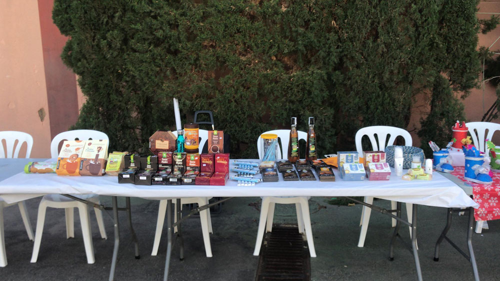 Bajo, una muestra de los productos ofrecidos por una voluntaria del equipo |