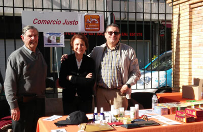 | Fieles a difundir el Comercio Justo lo mas posible estuvimos en este Mercadillo, para mostrar y vender nuestro productos solidarios. -También como en otras ocasiones, ofrecimos una degustacion de chocolate y galletas subvencionados por el Excmo Ayuntamiento de la Ciudad. Bajo, unas imagenes de ese día, en el que se celebraba el Medio Año Festero, cuyo desfile terminaba precisamente en el Mercadillo, por lo que a la hora de llegada, la animacion y ventas fueron importantes |