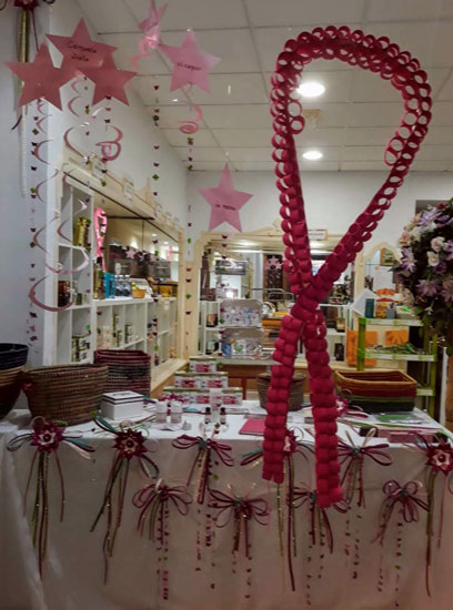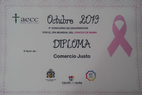 | Participacion en el Concurso de escaparates en pro de la Lucha contra el el Cancer de Mama con Diploma concedidoa nuestra Tienda |