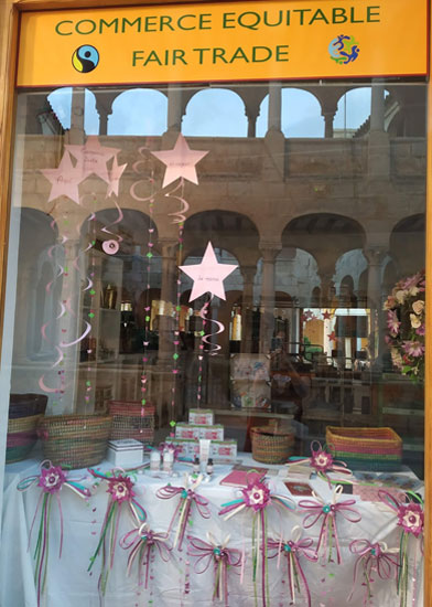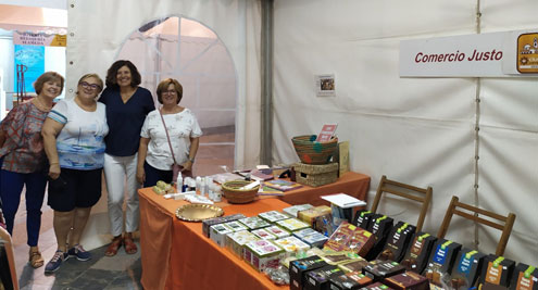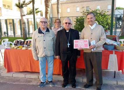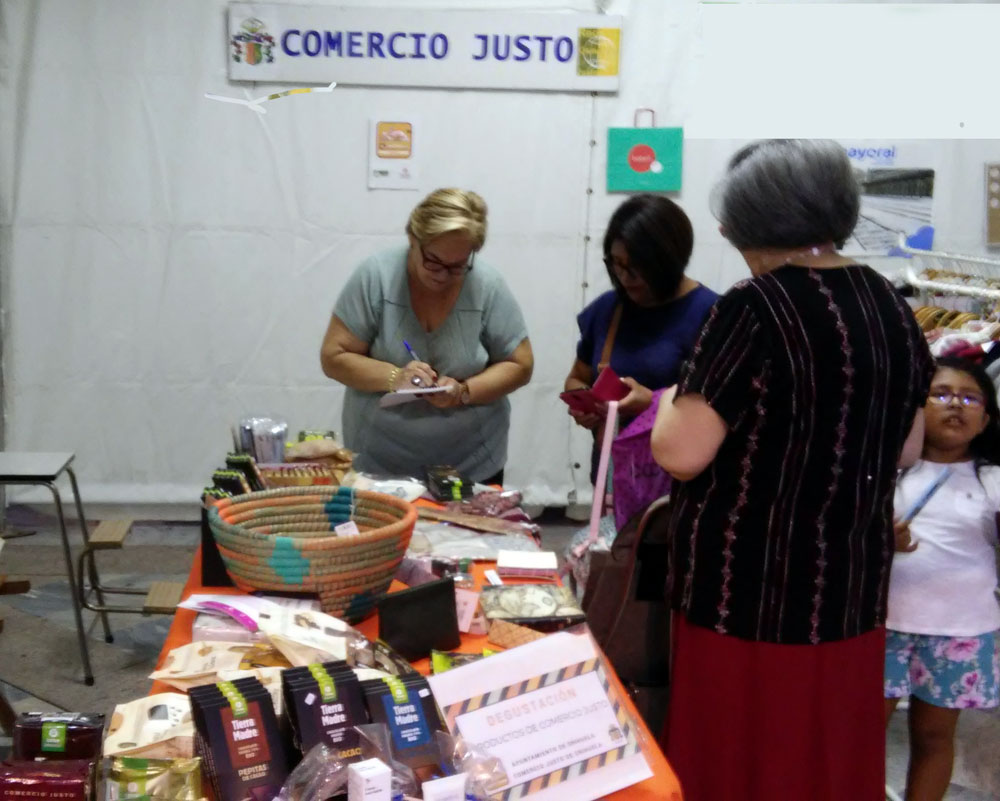 Nuestra tienda estuvo presente en un stand de información y venta. En la foto de bajo, el Sr. Obispo muestra su adhesion al Comercio Justo |
