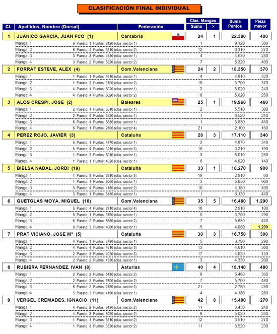 9 primeros clasificados ( tomado de http://www.fepyc.es) |