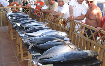 | La pieza mayor la consiguió en esta segunda manga la BLANC Y BLAU patroneada por Fracisco Artacho de la C. Valenciana con una bacoreta que pesó 14,200 con una talla de 100 cm. Dicho tamaño es de los mas grandes que se consiguen, según Bauchot y Pras, en el Mediterráneo aunque hay reporters en Fish Base que refieren tallas de 1,22 y 16,5 de peso. Aparte de todas estas capturas, hubo numerosas picadas de atunes, como las de la ARCADIA con 4 atunes de 10 a 20 kg devueltos al mar |