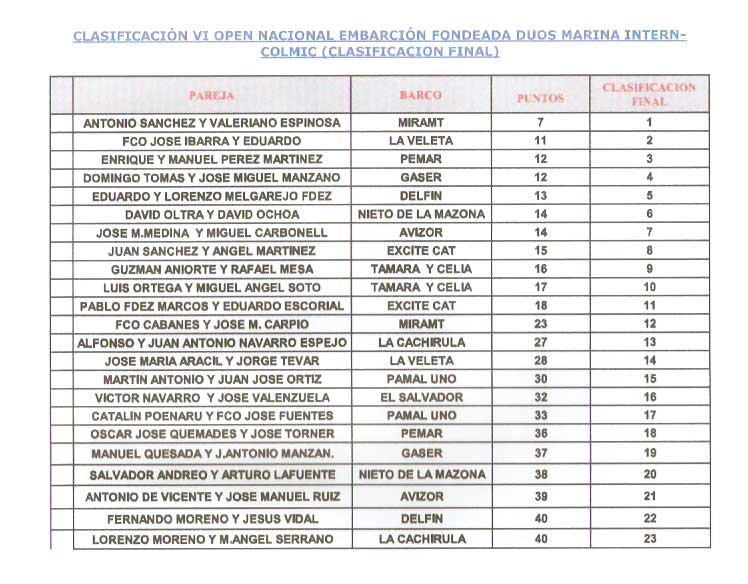 El Club Náutico Marina Internacional ha organizado el sábado 6 de mayo el VI Open Nacional CNMI-Colmic de pesca embarcación fondeada dúos. Evento celebrado en nuestro Club por sexto año consecutivo y en el que han participado un total de 23 dúos. Pescadores que han llegado de diversos clubes náuticos, algunos de ellos participan desde su comienzo, y que han representado al Muelle pesquero, al R.C.N.T, al Club de Guardamar, Tecnopesca, C.R. de Cartagena, Arenys de Mar, Club de Regatas de Alicante, Club de Regatas de Burriana y nuestro Club Náutico Marina Internacional.