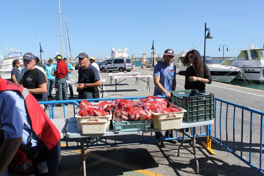 Al día siguiente, a las 7 h, tuvo lugar el inicio de la competición, tomando la salida desde la bocana y celebrándose a 2 mangas de 4 y 3 horas. Debido a la previsión de mala mar a primeras horas de la tarde, hubo que adelantar el inicio de la segunda manga, para poder aprovechar esas primeras horas y que la jornada de pesca fuera completa. Decir tiene, que pese a que las condiciones meteorológicas no eran las más favorables para la pesca, el concurso se culminó con total éxito en cuanto a tiempo, duración de las mangas y capturas, Con un promedio de 8/10 Kg. Por pescador y manga, pescado que fue entregado a la Asociación sin ánimo de lucro “Alimentos Solidarios de Torrevieja.
