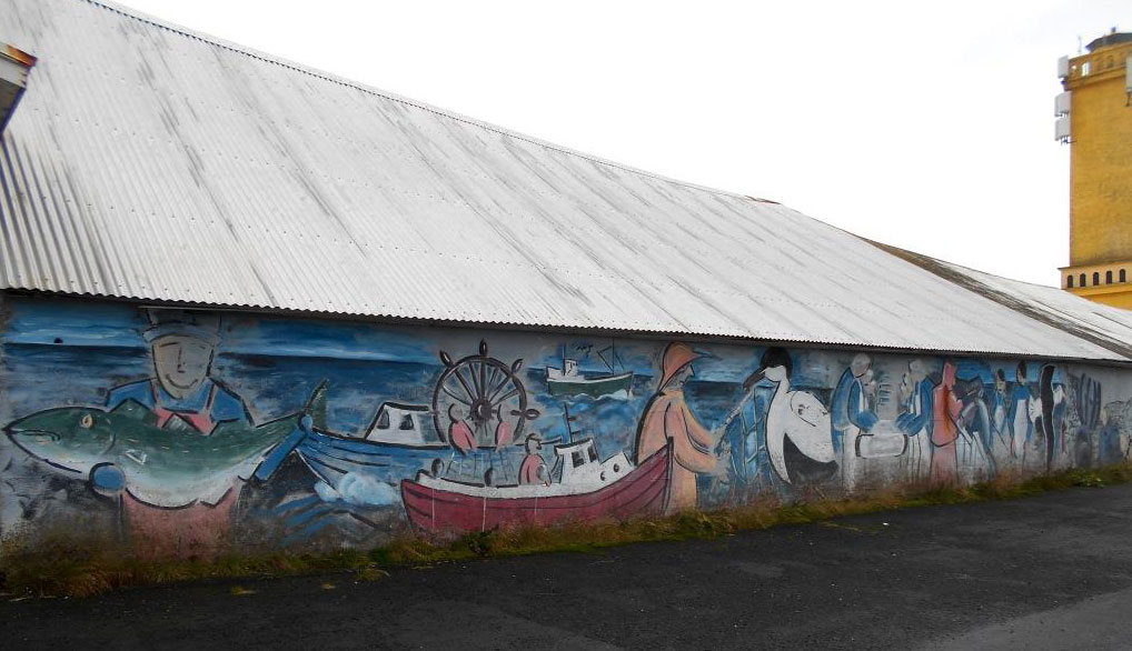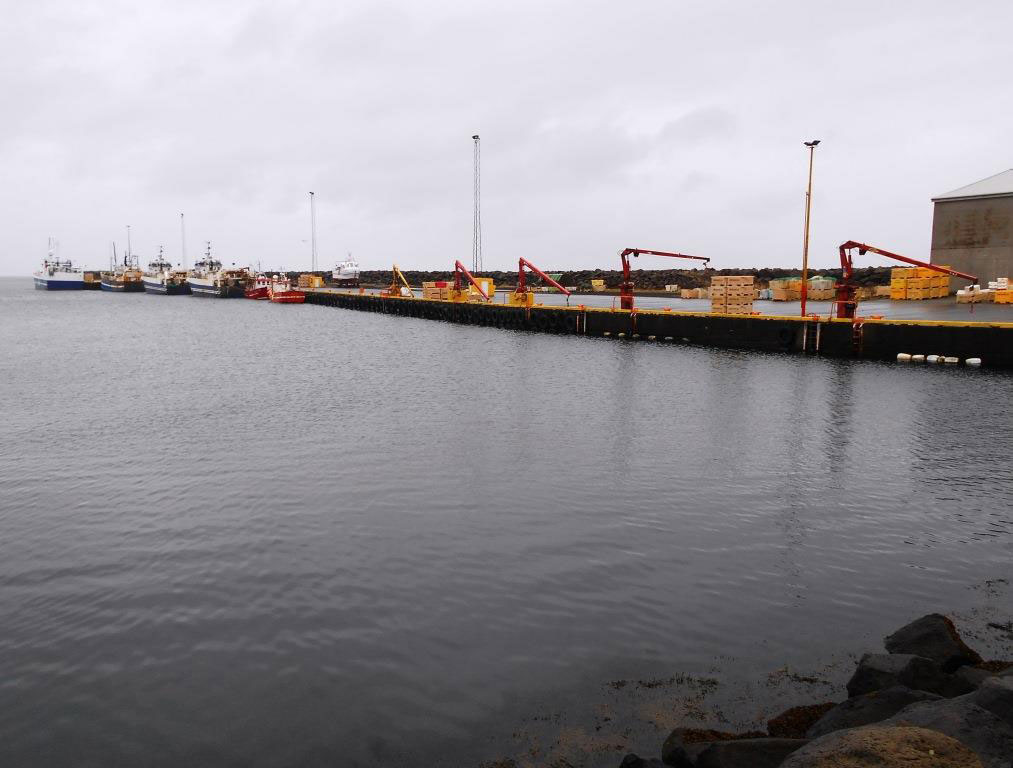 el puerto, donde hay grúas pequeñas, para la pesca artesanal (barcos de 7 a 12m) que ponen el pescado en cajas de 250 kg y las suben por la grúa, donde un montacargas se las lleva a la cámara frigorífica En este pequeño pueblo, un pescador artesanal, en temporada alta (junio) puede llegar a pescar 500-750kg/día entre bacalao, eglefino y carbonero. Llegaban a pescar hasta