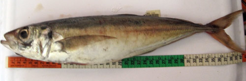 ![]() ![]() A la izda Jurel negro (trachurus trachurus) de 41 cm y 650 gr, muy frecuentes en esta zona .El color del dorso es gris o verde-azulado. Flancos amarillo-verdosos muy plateados y con irisaciones de distintos colores. Vientre blanquecino y plateado. Tienen una mancha negra en el ángulo posterior del opérculo, extendida un poco por el origen del tronco.La talla máxima registrada corresponde a 70 cm , aunque la talla más común es de los 22 cm. Peso máximo 2 Kg . A la derecha foto procedente de Fish base: jureles blancos trachurus mediterraneus. La talla máxima registrada corresponde a 60 cm , aunque la talla más común es de los 30 cm . |