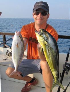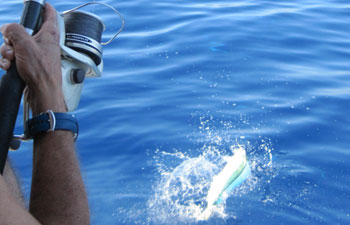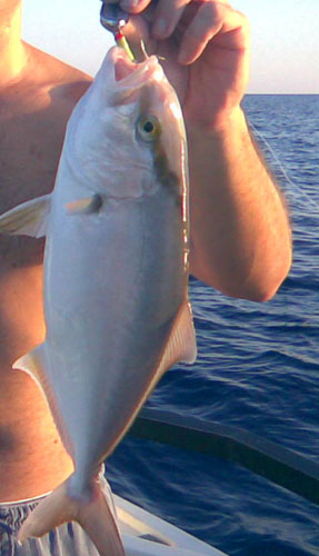 | Una imagen que hemos deseado este verano , tan frecuente en vientos de levante y mal estado de la mar. A principios de octubre, por el contrario, hemos gozado de unos preciosos día de mar en calma, que nos ha permitido salir y disfrutar del mar aunque, no tanto como quisiéranmos, de la pesca. La pesca al curricán costero, ha flojeado un tanto este año. Las lampugas son francamente mas escasas que el año pasado y de ordinario las hemos encontrado muy aisladas o en bancos poco numerosos . Las bacoretas no llegan por lo común al medio kilo. Los atunes son muy escasos y de un tamaño que aún no llegan al kilo, como otros años en estas fechas.Su peso medio en estas aguas costeras ( a unas 5 millas de la costa) no llega al medio kilo Como es lógico los pocos ejemplares capturados, los volvemos al mar A estas alturas hemos pescado algún ejemplar de lampuga de 1´150 kg de peso para 59 cm de largas , consiguiéndolas al jigging o con cebo natural en sitios puntuales, pescando también las pequeñas seriolas de este año. El promedio de peso de éstas, por lo que hemos visto en la pasarela del Club y las que hemos capturado, son aún pequeñas, oscilando entre los 300 y 600 gr |
