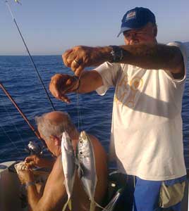 Pescando galanes a bordo del del GLAND. ( Fotos remitidas por L.Llor)
