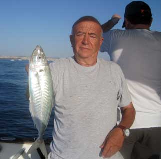 | Bajo, unas imágenes de una pesquera hecha por la tarde, a bordo del Avizor, cerca dde la costa. También pescaron alguna dorada y pageles. Pulsen imágenes para ampliar |