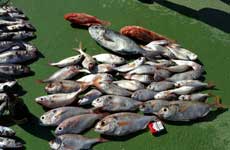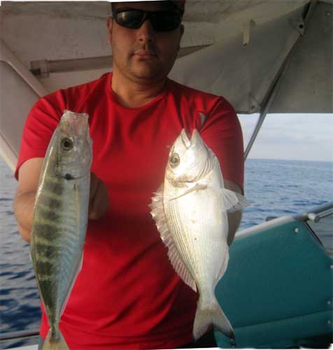 | Arriba a la izquierda, J.Manuel, muestra uno de los mabres, que entraron al langostino. En el centro, palomina o trachinotus ovatus, y a la derecha. arriba, jurel blanco y bajo una sorela hembra. Pulsen imagenes para ampliar |