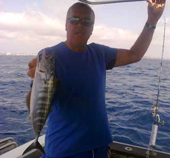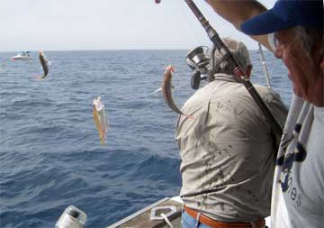 Asi pues, mejor preparados, con aparejos con terminales muy cortos de cable de acero ( para ser escondidos en media sardina), fuimos alla de nuevo. Queríamos hacer una pesquera breve y desembarcar a eso de las 12.