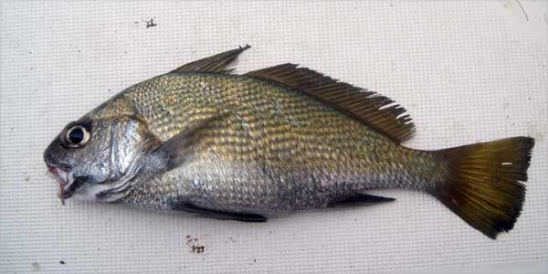 Este curioso pez, que puede alcanzar los 50 cm de largo, presentaba una malformación, o una deformidad causada por algun mordisco, quizás, de un depredador, en su epoca juvenil. Pulse aquí A la derecha, otro ejemplar capturado en otra ocasión por el autor.