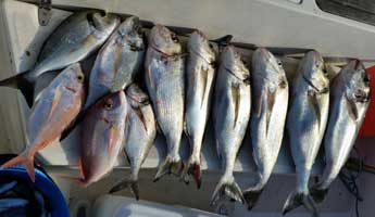 Arriba, un modesto pero entretenido rancho con pageles, vidriadas, chopas,pageles y algun pargo. |