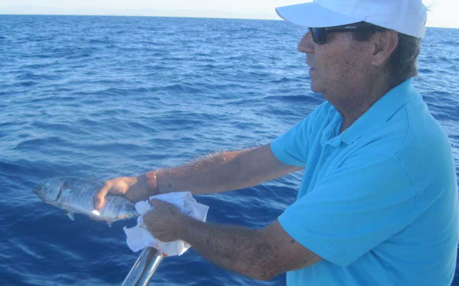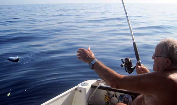 Bajo. otras imágenes de ese día de pesca: Jose M.Linares con un atún que devolvió al mar |