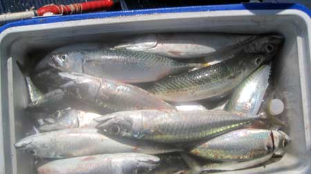 La mañana resultó entretenida, pescando un buen puñado de bacoretas cuyo peso oscila aún entre los 200 y unos 400 gramos, los nacidos en esta temporada . (Pulse imágenes para ampliar)