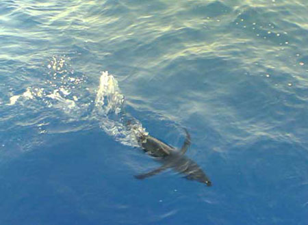el patudo, pero su cuerpo es mucho mas estilizado.Tiene una aleta pectoral muy larga:
