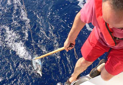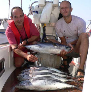 imagen por la derecha : una de las albacoras prendida del anzuelo