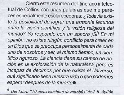 Copio seguidamente dos interesantes declaraciones de científicos de talla mundial como son Francis Colling. Director del Instituto Nacional Americano para la Investigacion del Genoma humano y el agnostico Jastrow Hastrow, Director de los Estudios Espaciales de la Nasa |