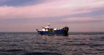Fue un poco compleja su búsqueda, ya que no teníamos radar a bordo. Solamente contábamos con una estupenda sonda gráfica y un Loran C, aparato que utilizábamos hacía unos años y que mediante la captación de señales radioeléctricas emitidas desde 3 puntos de la costa permitía la localización geográfica aproximada de nuestro barco. Con ayuda de un gran mapa militar a una escala de 1/50.000 que teníamos en casa, calculamos la posición del naufragio a partir de las distancias de radar proporcionado por el patrón del arrastrero. |