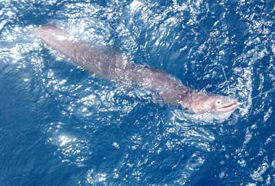 Pero ni Rate ni yo estamos dispuesto a ceder nuestra presa. El enorme congrio está ya, al lado del barco. Con decisión le clavo un bichero cerca de la cabeza y Manolo otro por el vientre para que no gire. De todos modos el congrio se retuerce batiendo la cola en el agua con furia. Lo levantamos un poco y le pasamos un cabo por la cabeza para inmovilizarlo junto a la borda. Allí con un mazo le golpeamos la cabeza y luego le clavamos un gran cuchillo de monte en la nuca. Solamente entonces lo subimos a bordo, ya que sus poderosas mandíbulas y dientes son realmente realmente temibles.
