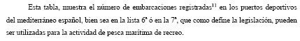 Según Esteban Graupera, Presidente de la Confederacion de Pesca Recreativa Responsable, aún reconociendo que hay poca informacion científica al rspecto, estima en el 2010 que " la flota de pesca recreativa española es de unas 100.000 embarcaciones , afecta a unos 150.000 pescadores, repercute sobre el recurso pesquero en unas 30 Ton. de capturas, produce un impacto socioeconomico de unos 1.000 millones de Eu, y genera del orden de 7.000 puesto de trabajo. Todo lo anterior y otras causas son las que determinan la extinción de varias especies en algunas zonas, la rareza de otras o el riesgo de desaparición de muchas. Especies que han desaparecido de las aguas de Torrevieja