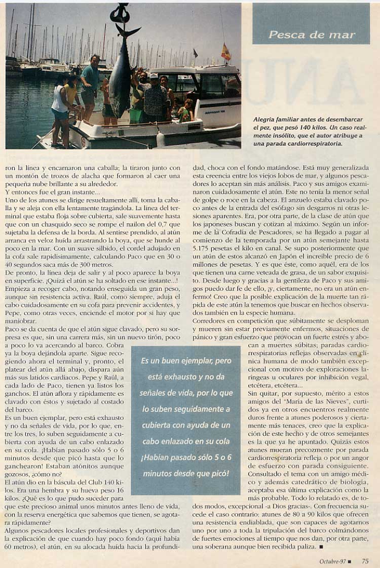 Nota del autor: Los pescadores antiguos del atún, creían que a veces, el atún gigante que se entregaba en pocos minutos, era porque se iba hacia el fondo y se estrellaba contra él...