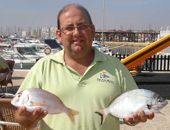Los cebos permitidos fueron la lombriz y el langostino congelado. La clase de peces, en esta zona de fondo rocoso rico en corales blandos de la clase gorgonia (llamadas en Torrevieja olivericas), fueron serranos, vidriadas, pargos juveniles, sargos, pageles etc