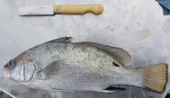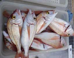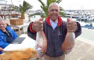 | Arriba, Fernando Marcos de la REMOS, con dos pageles de cerca de medio kilo. A la derecha una buena corva o corvallo |